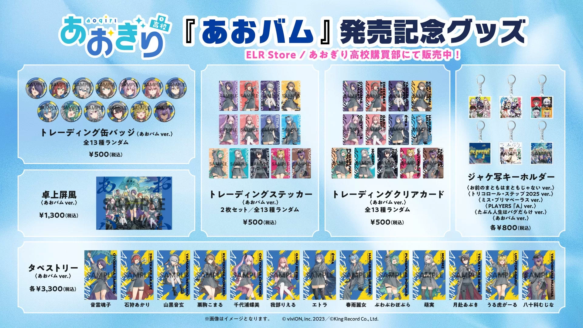 また、メジャー1stアルバム『あおバム』の発売にあたり、EVIL LINE RECORDSの公式オンラインストア『ELR Store』で販売される各メンバーソロ盤/13種セット盤に付属するアクリルスタンドのデザインと、法人別オリジナル特典のデザインも公開中です。