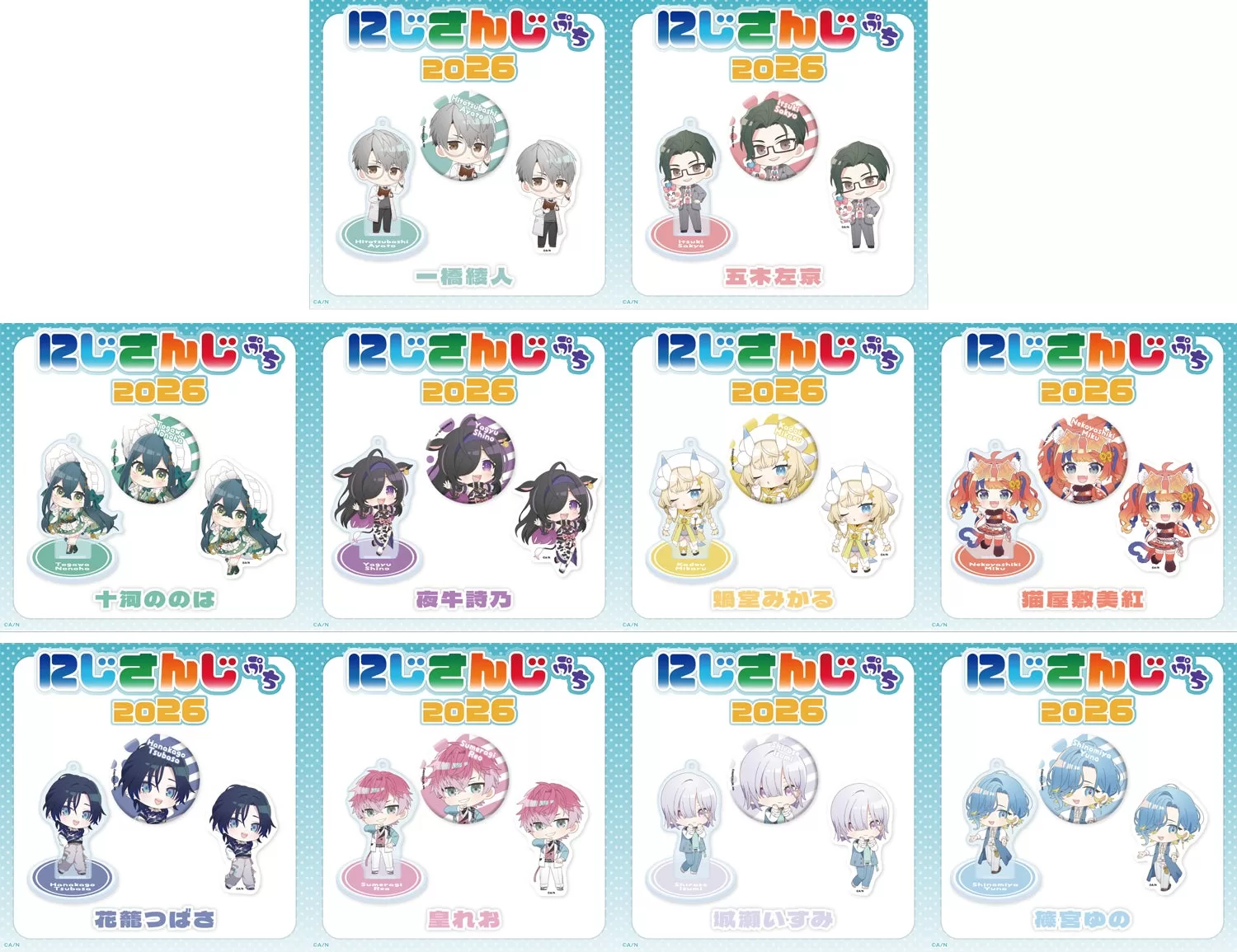 キュートなデフォルメビジュアルのにじさんじぷちシリーズ。今回は「にじさんじぷち2026」として、一橋綾人、五木左京、十河ののは、夜牛詩乃、蝸堂みかる、猫屋敷美紅、皇れお、篠宮ゆの、城瀬いすみ、花籠つばさの総勢10名が登場!