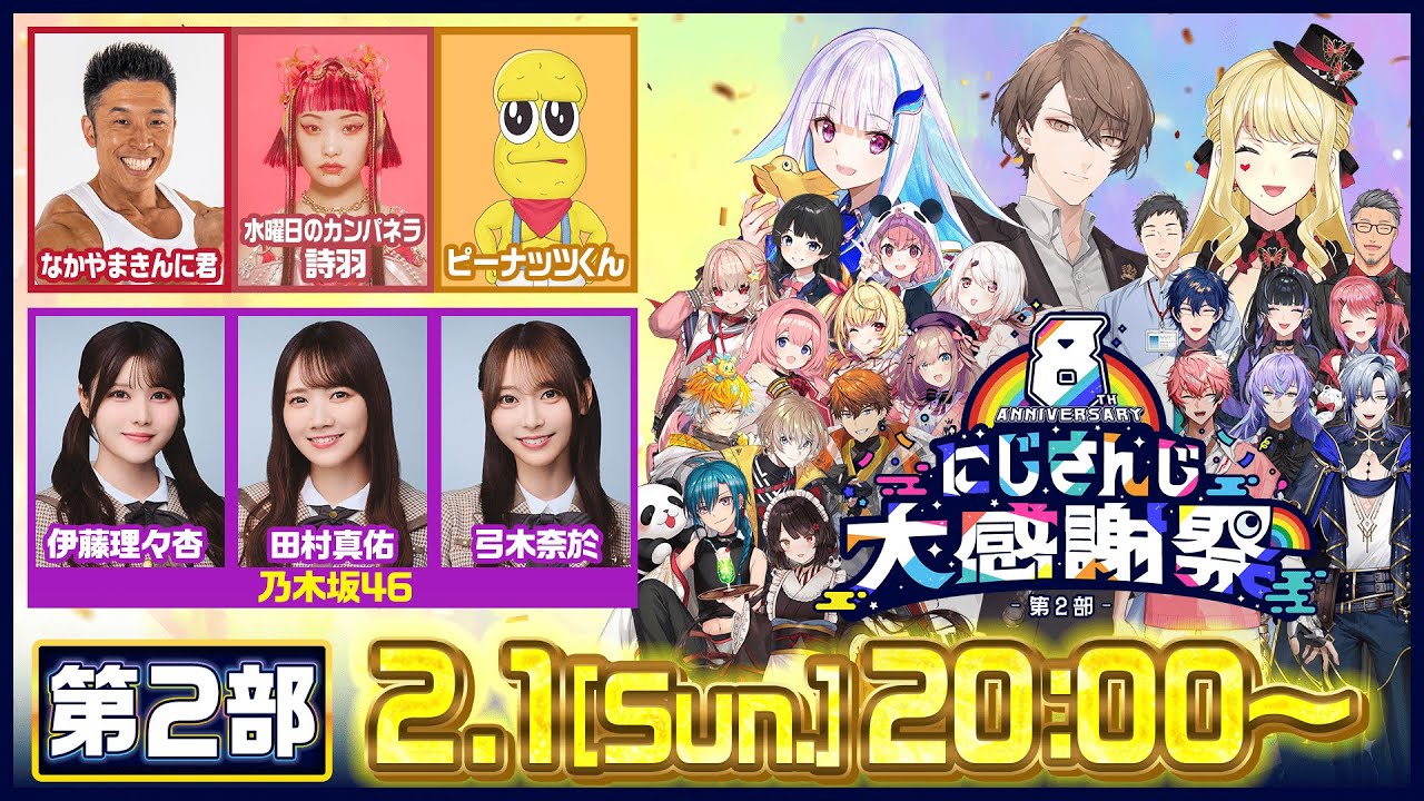 ANYCOLOR株式会社が運営するVTuberグループ「にじさんじ」は、2026年2月3日の8周年を記念した特別番組『8th Anniversary にじさんじ大感謝祭』を、にじさんじ公式YouTubeチャンネルで生配信すると発表した。
