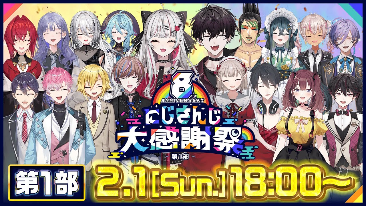 ANYCOLOR株式会社(本社:東京都港区 代表取締役:田角陸、以下「当社」)が運営するVTuber / バーチャルライバーグループ「にじさんじ」は、2026年2月1日(日)18時から特別番組「8th Anniversary にじさんじ大感謝祭」を生配信いたします。8周年の感謝を込めて特別番組をお届け!豪華ゲストも多数出演!