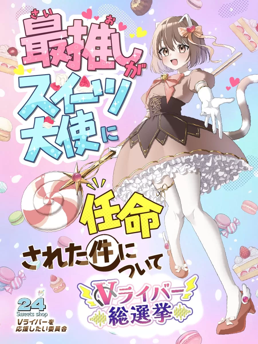 全国で24時間無人スイーツ販売店「24スイーツショップ」を展開するトゥエンティフォーは、ライブ配信領域を中心にクリエイター支援を行うボンドと協力し、推しのVライバーを“来店”を通じて応援できる参加型キャンペーン「最推しがスイーツ大使に任命された件について ーVライバー総選挙ー」を開催します。