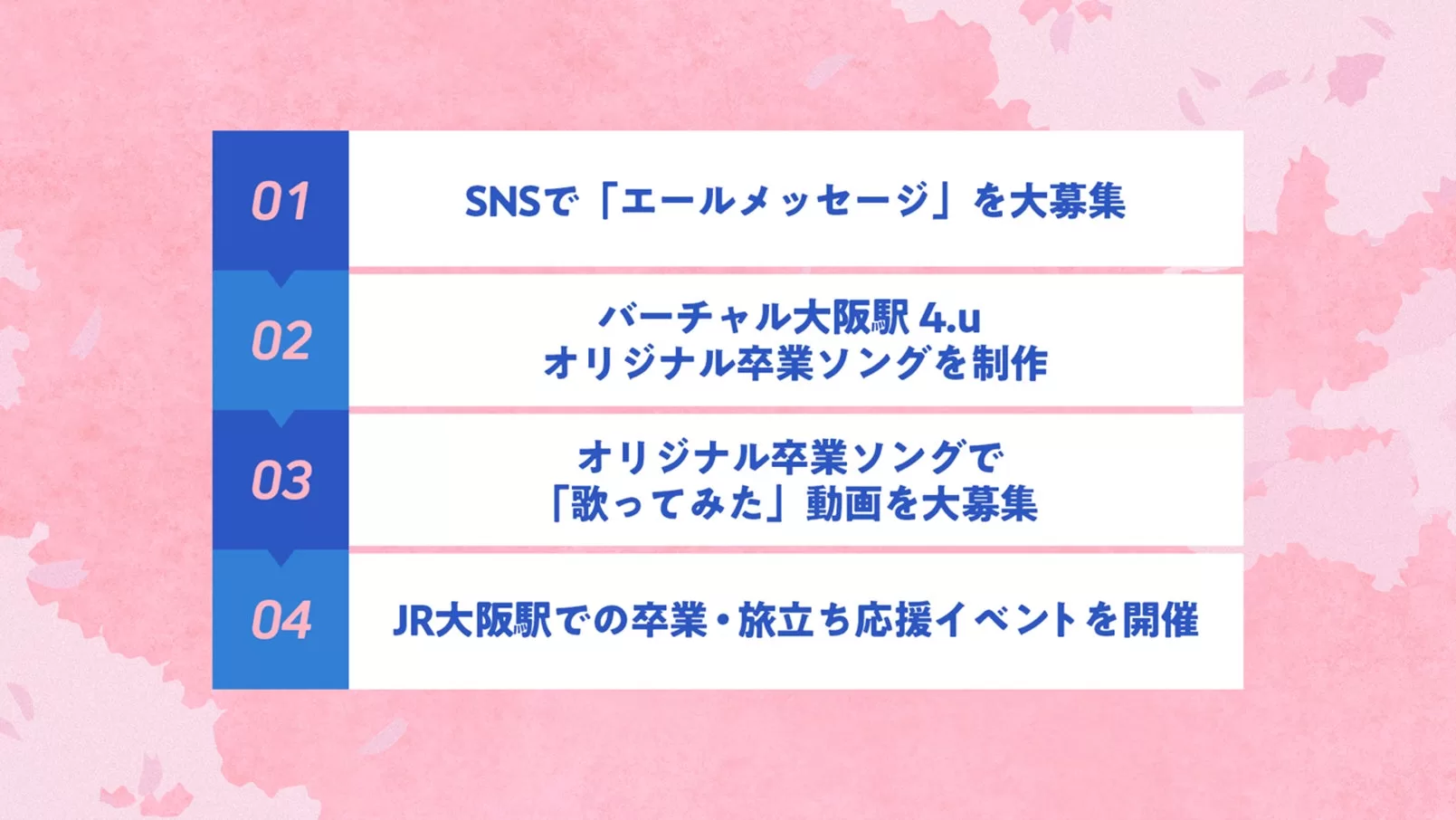 ❹ 想いを伝える:JR大阪駅での卒業・旅立ち応援イベントを開催(3月下旬予定)