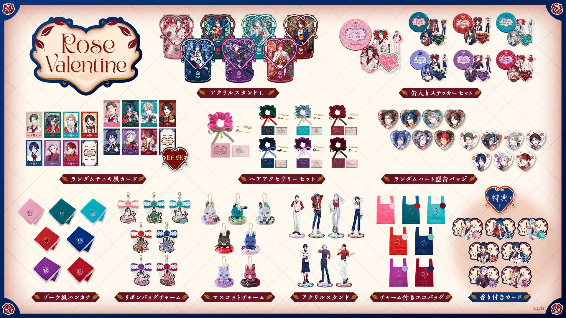 にじさんじオフィシャルストアにて「Rose Valentine」グッズを購入すると、お買い上げ3,000円(税込)ごとに「香り付きカード(全7種)」をランダムで1点プレゼントいたします。