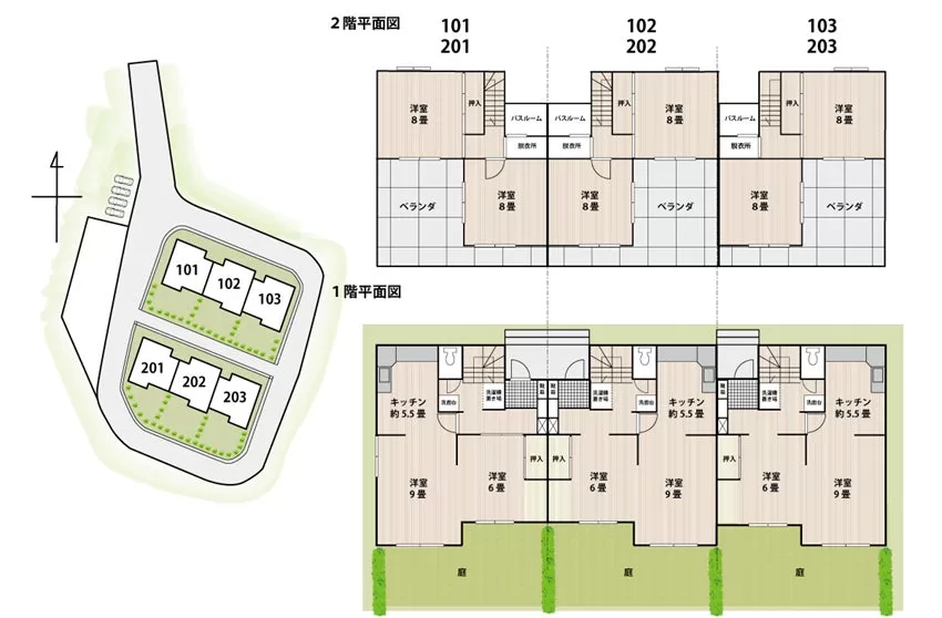 鉄筋コンクリート2階建て2棟6戸のうち3戸