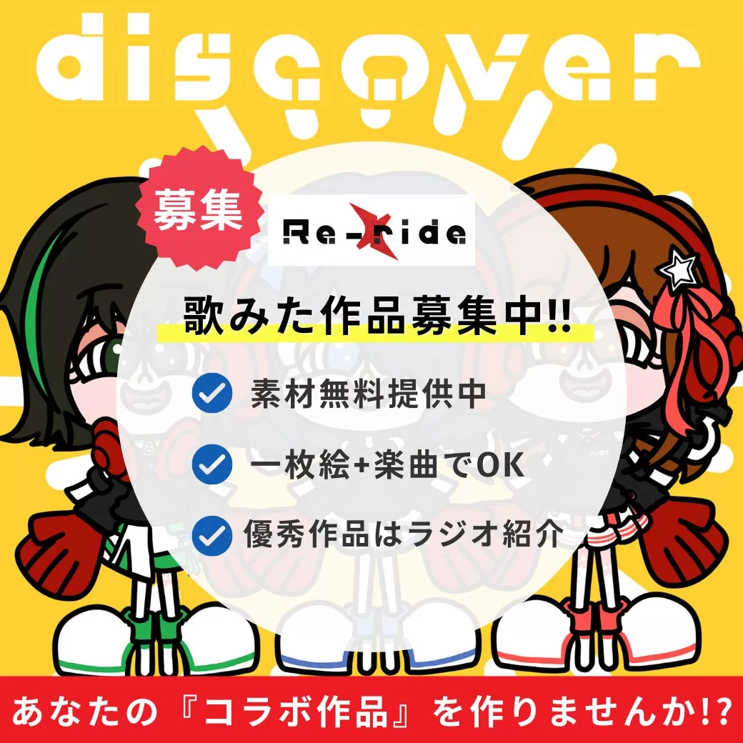 本家「discover / えのぐ feat. C.H.E.T.」の配信リンクはこちら。公式コラボアーティストとしてFigaro、ヤマネコ、めぐら9組がRe-ride作品をリリース済みで、各MVも順次公開予定です。