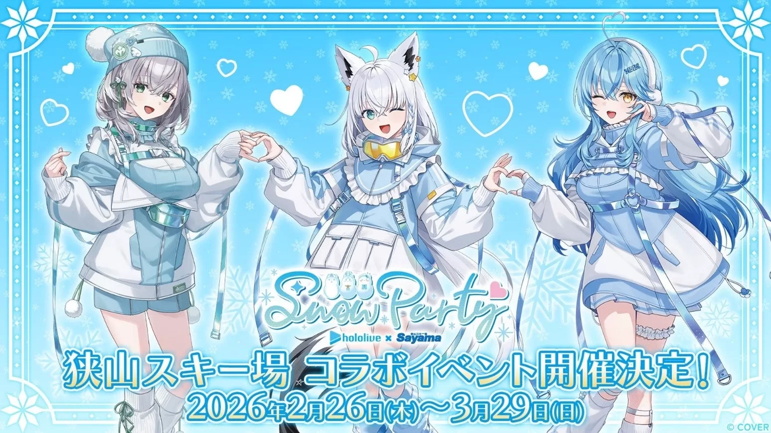 西武レクリエーション株式会社(本社:埼玉県所沢市、社長:依田龍也)が運営する狭山スキー場(埼玉県所沢市)では、カバー株式会社(本社:東京都港区、代表取締役社長:谷郷元昭)が運営する女性 VTuber グループ「ホロライブ 」の中でも“雪”を連想させる名前や色を持つ「白上(しらかみ)フブキ」「白銀(しろがね)ノエル」「雪花(ゆきはな)ラミィ」の3名が狭山スキー場を彩るコラボレーションイベント【Sayama hololive Snow Party】 を2026年2月26日(木)~3月29日(日)の期間限定で開催します。