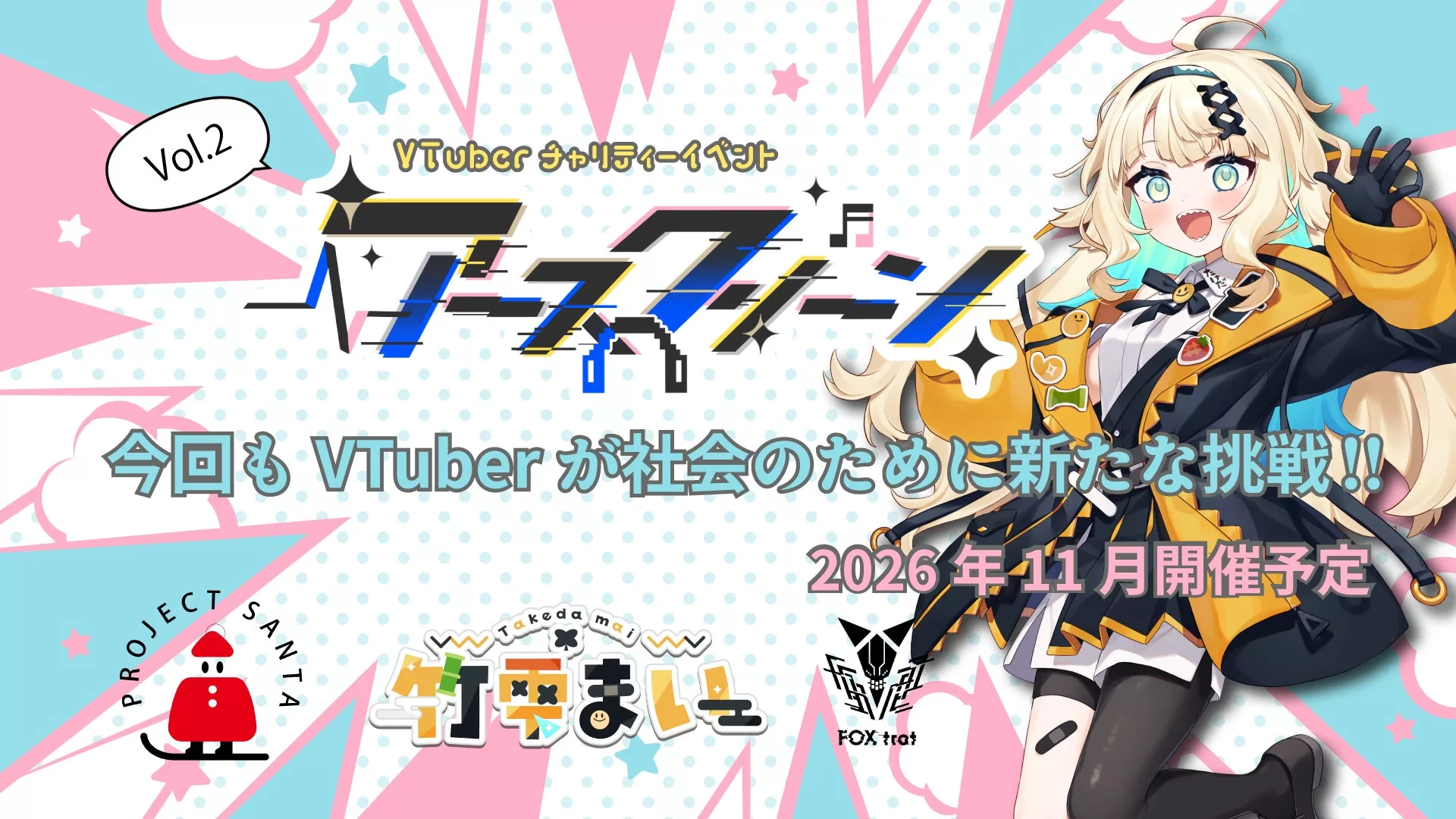 この度、第2回『アースクリーン』の開催が2026年11月に決定し、プロジェクトサンタが引き続き参画する予定。3日間にわたる大型イベントで、主なコンテンツとしてVTuberによる歌枠リレー配信、リアル会場でのライブイベント、VTuber参加のチャリティー活動が予定されている。収益の一部はプロジェクトサンタへ寄付され、病院で療養する子どもたちの支援に充てられる。