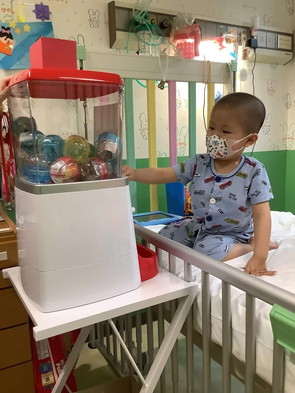 現在13病院で設置・運用していますが、「ガチャガチャがひけるよ!」と声掛けをすると、治療を頑張るぞ!と子ども達の表情がぐっと変わる効果があるというお声を医療現場より頂いています。
