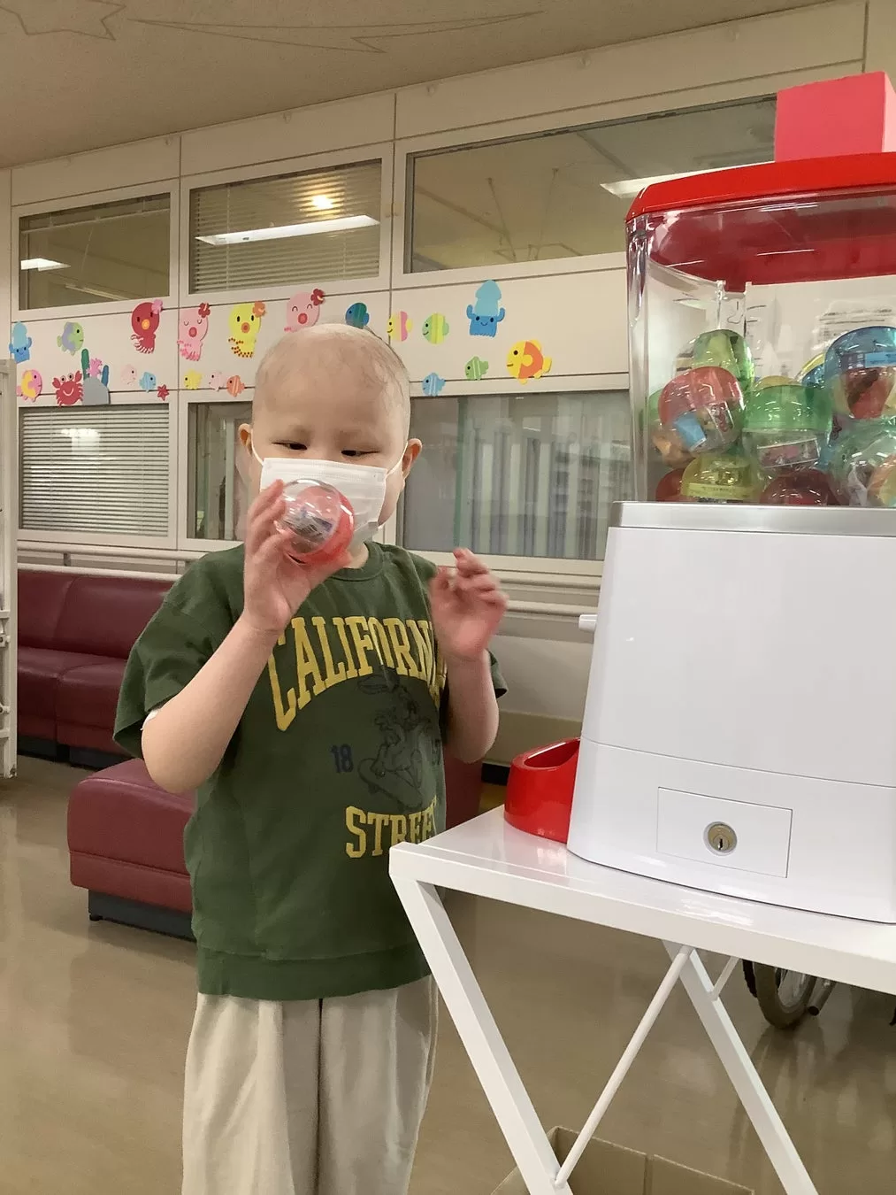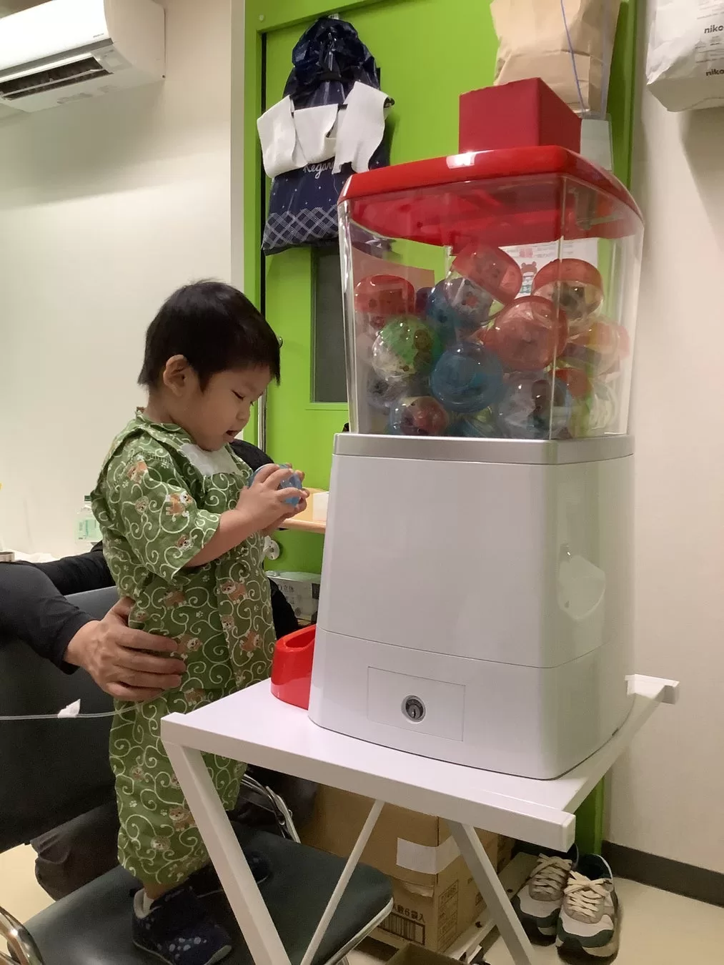現在13病院で設置・運用していますが、「ガチャガチャがひけるよ!」と声掛けをすると、治療を頑張るぞ!と子ども達の表情がぐっと変わる効果があるというお声を医療現場より頂いています。