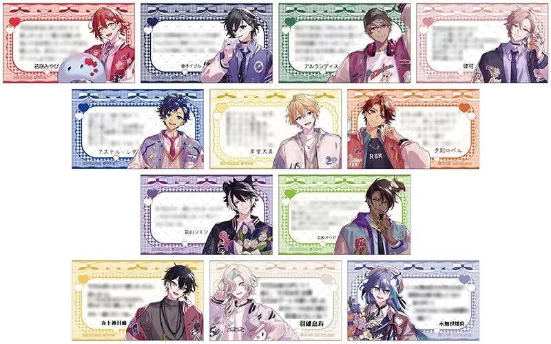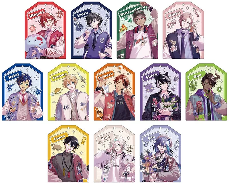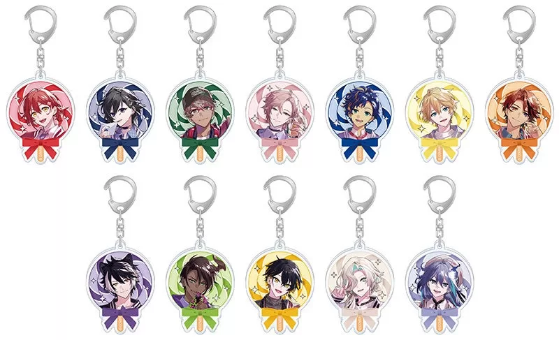 新商品には、花咲みやび、奏手イヅル、アルランディス、律可、アステル・レダ、岸堂天真、夕刻ロベル、影山シエン、荒咬オウガ、夜十神封魔、羽継烏有、水無世燐央の12名が登場。ホワイトデーをテーマにした描き下ろしイラストを使用したキャラバッジコレクション(全12種、1パック550円税込)、アクリルスタンド(12種、各2,035円税込)、クリアファイル(440円税込)、アクリルキーホルダー(12種、各715円税込)、プレゼントタグコレクション(全12種、1パック220円税込)などがラインナップされる。