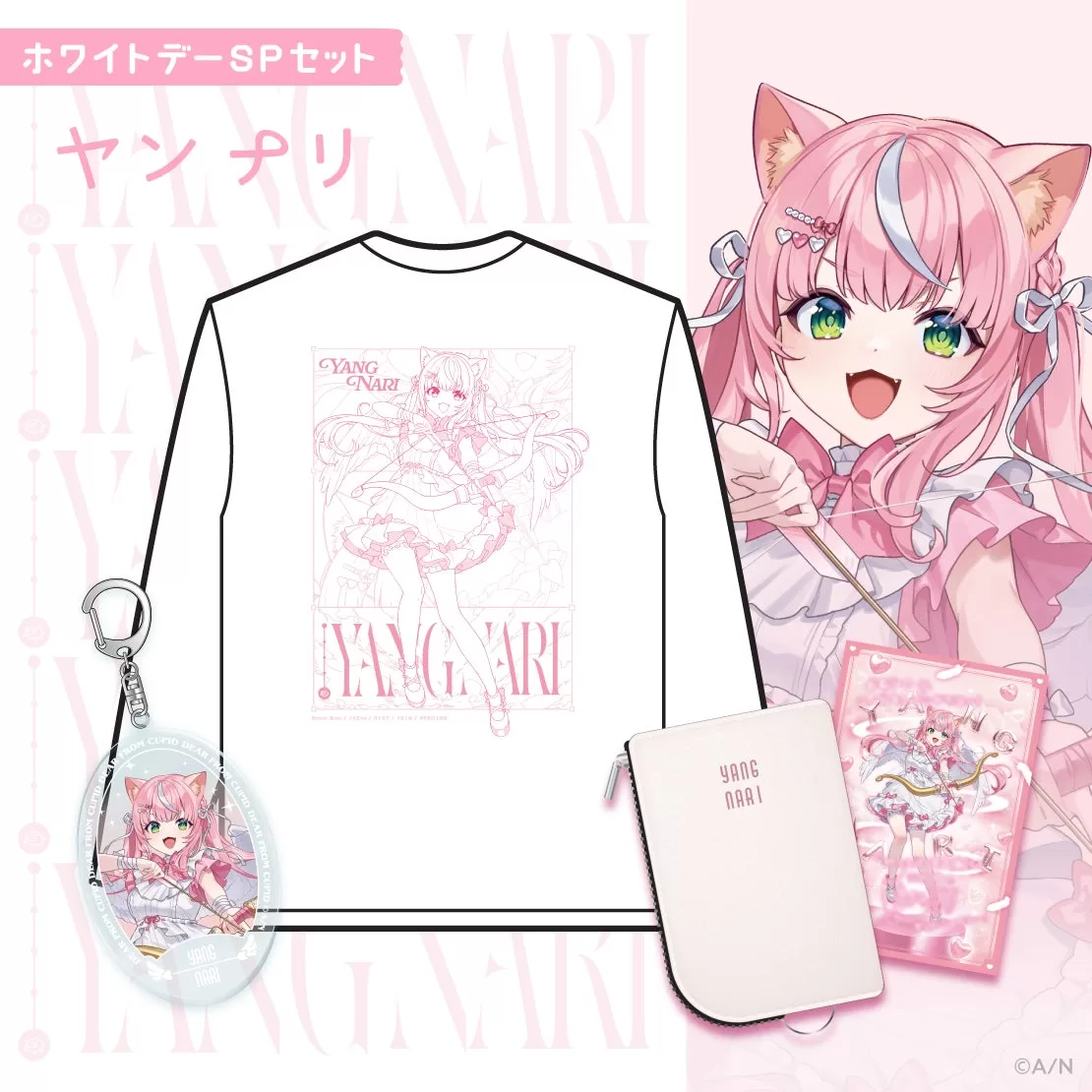 グッズラインナップは、アクリルスタンド、ランダムチェキ風カード、ホワイトデーSPセット、ステッカーセット、レターセット、リボンバッグチャーム、ハート型缶バッジ、ぬいぐるみマスコットの全8種類。