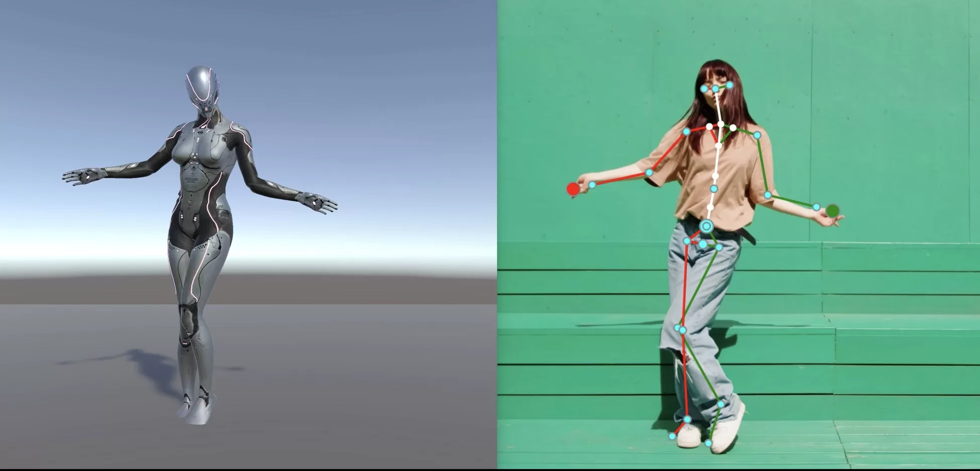 - SENSOR LESS:特別な機材不要。Webカメラ2台とゲーミングPCで3m×3mのスペースで撮影可能。顔や手指のトラッキングも追加装備なし。