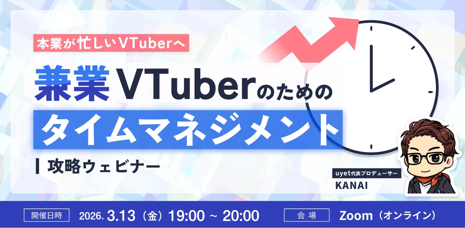 【3月13日(金)19時】本業が忙しいVTuberへ 兼業VTuberのためのタイムマネジメント攻略ウェビナー開催 | 株式会社uyet