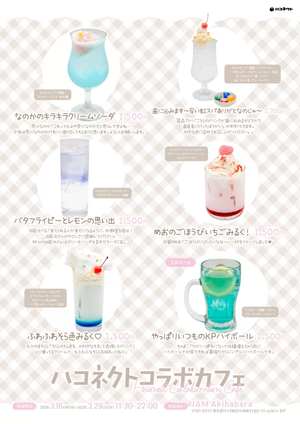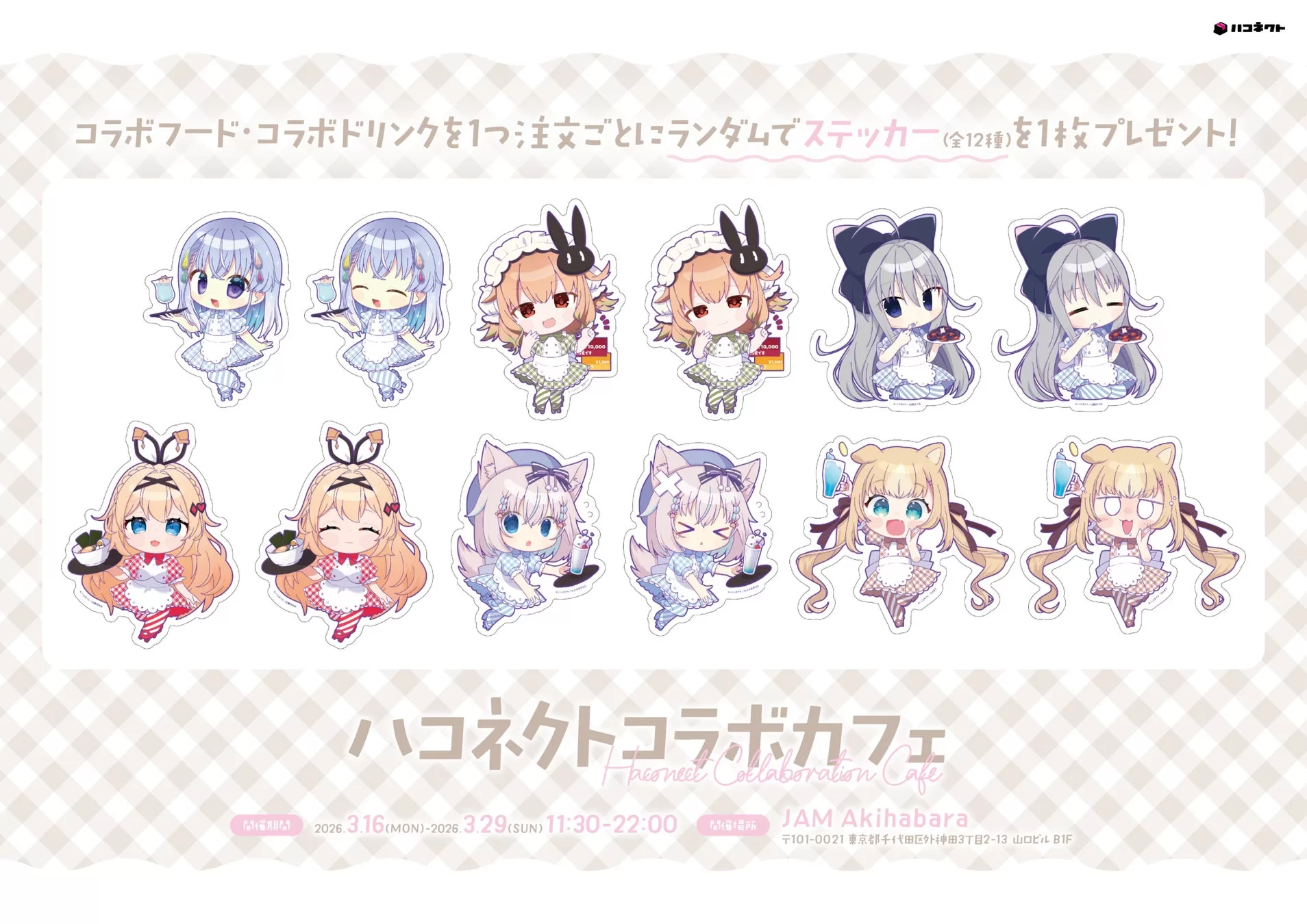 株式会社アナログ(所在地:東京都千代田区)が運営する、VTuber事務所ハコネクトは2026年3月16日(月)から3月29日(日)までの期間、純メイド喫茶「JAM Akihabara」にてハコネクトコラボカフェが開催されることをお知らせいたします。