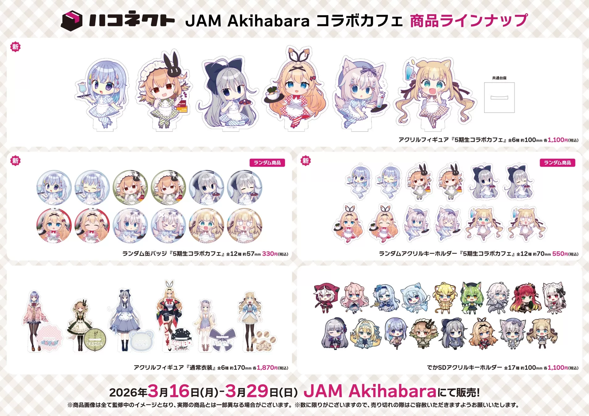 ・アクリルフィギュア『5期生コラボカフェ』全6種 約100mm 各1,100円(税込)
