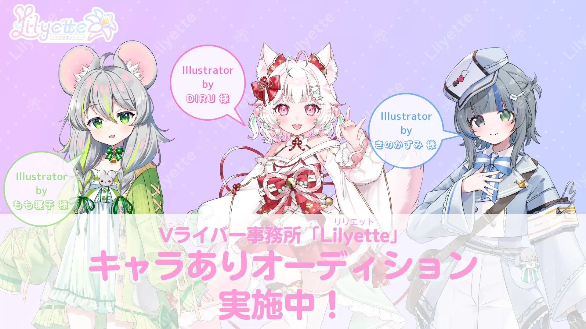Vtuber事務所ハコネクトの姉妹事務所Lilyetteは、IRIAM向け「キャラありオーディション」に新たに3名のキャラクターを追加したとのこと。
