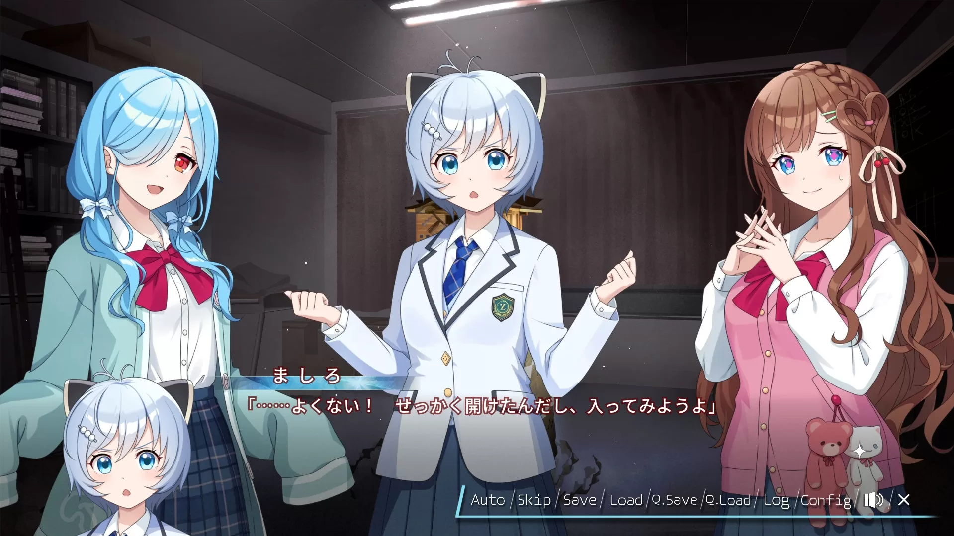 本作は2026年3月26日(木)に発売のVTuberプロダクション「.LIVE」所属のVTuber3名、「電脳少女シロ」「花京院ちえり」「ヤマト イオリ」の3名がヒロイン役を務めるホラー学園コメディADVです。