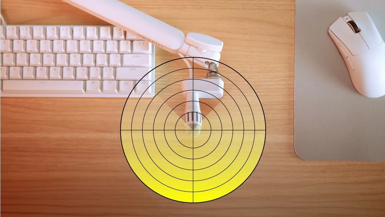 マイクには指向性(音を拾う範囲)があります。本製品は、集音方式にハイパーカーディオイド(鋭指向性)を採用。一般的な単一指向性マイクとは異なり、マウスのクリック音やキーボードなどの環境音を大幅に低減します。さらに、BGMやゲームサウンドと組み合わせてもミックスや調整が行いやすい、自然でクリアな音質を目指して独自のチューニングを施しています。