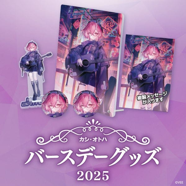 本日・8月27日に誕生日を迎えたカシ・オトハのバースデーグッズの詳細を公開するとともに、公式オンラインショップ「VEE Official Shop」にて受注販売を開始しました。