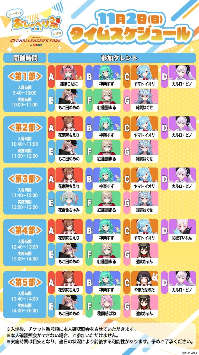 株式会社アップランド(本社:東京都世田谷区)は、同社が運営するVTuberグループ「.LIVE」と「ぶいぱい」による1on1トークイベント「アップランド おしゃべり祭2025 in 福岡」の開催を発表した。